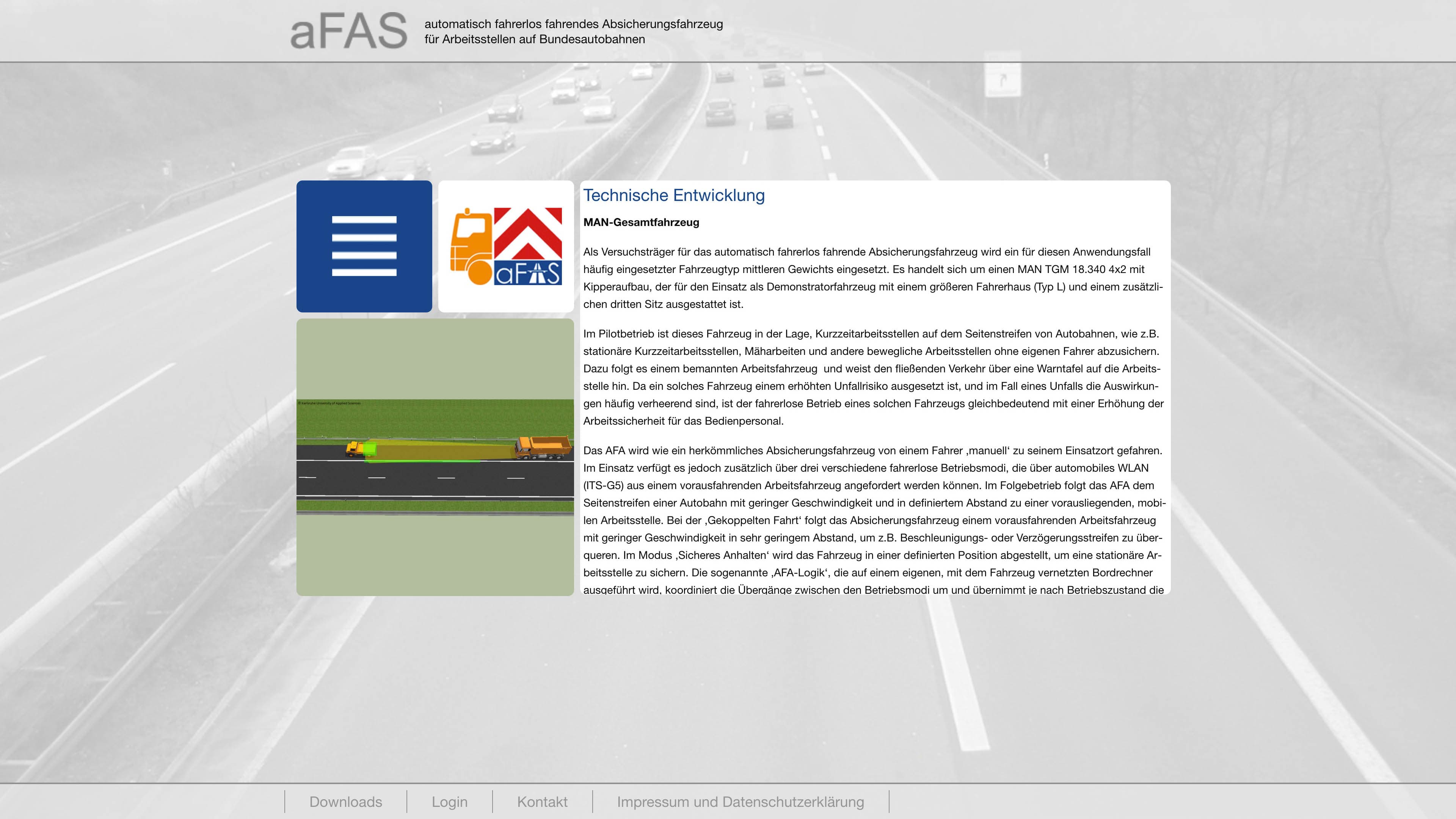 Im Projekt "afas" wird ein "automatisch fahrerlos fahrendes Absicherungsfahrzeug für Arbeitsstellen auf Bundesautobahnen" entwickelt.