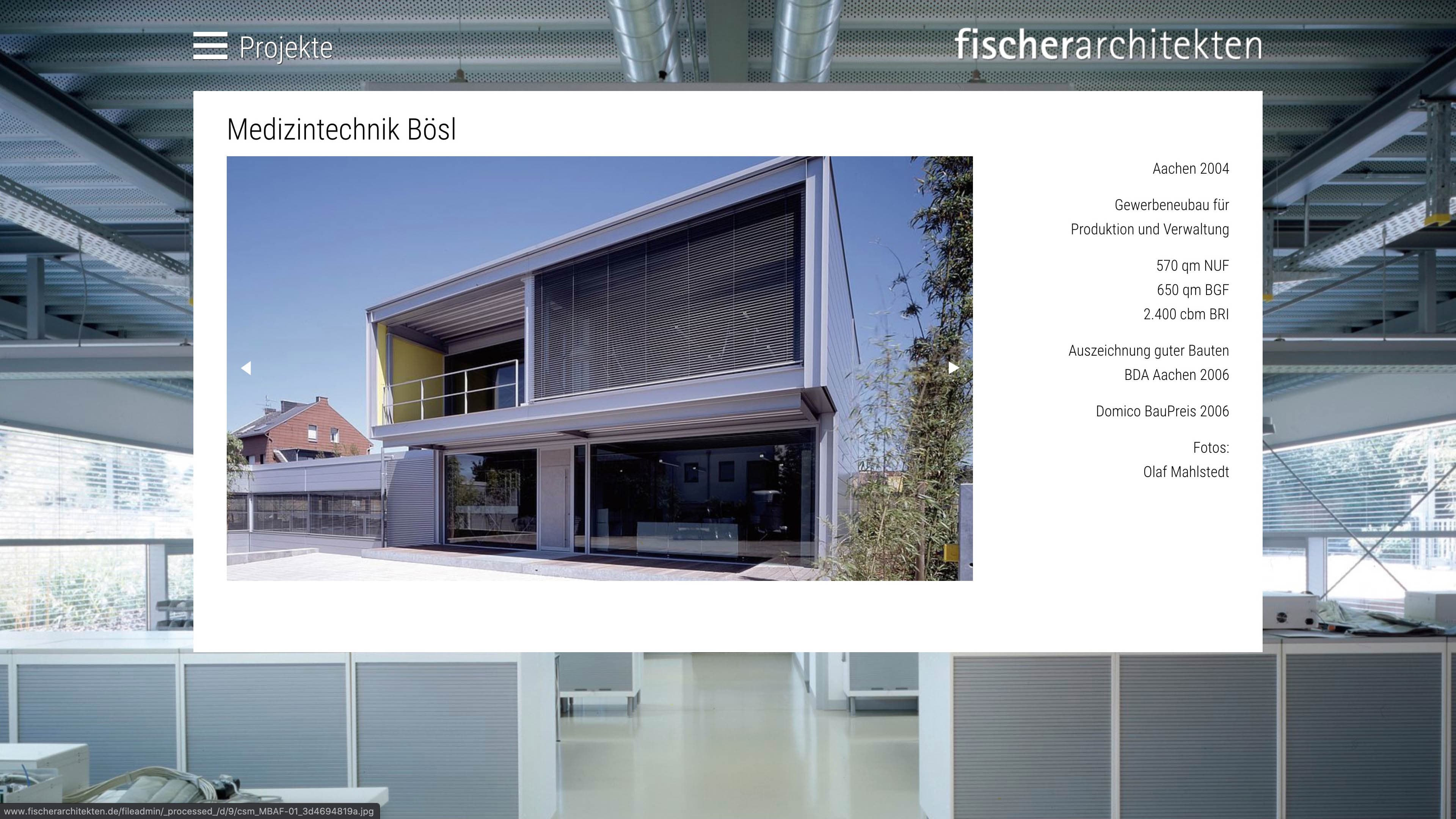 Beim Relaunch der Seite fischerarchitekten.de wurde das System auf Typo3 umgestellt. Das neues Layout stellt die Projekte klar in den Vordergrund und ein Filter trennt die verschiedenen Kategorien.