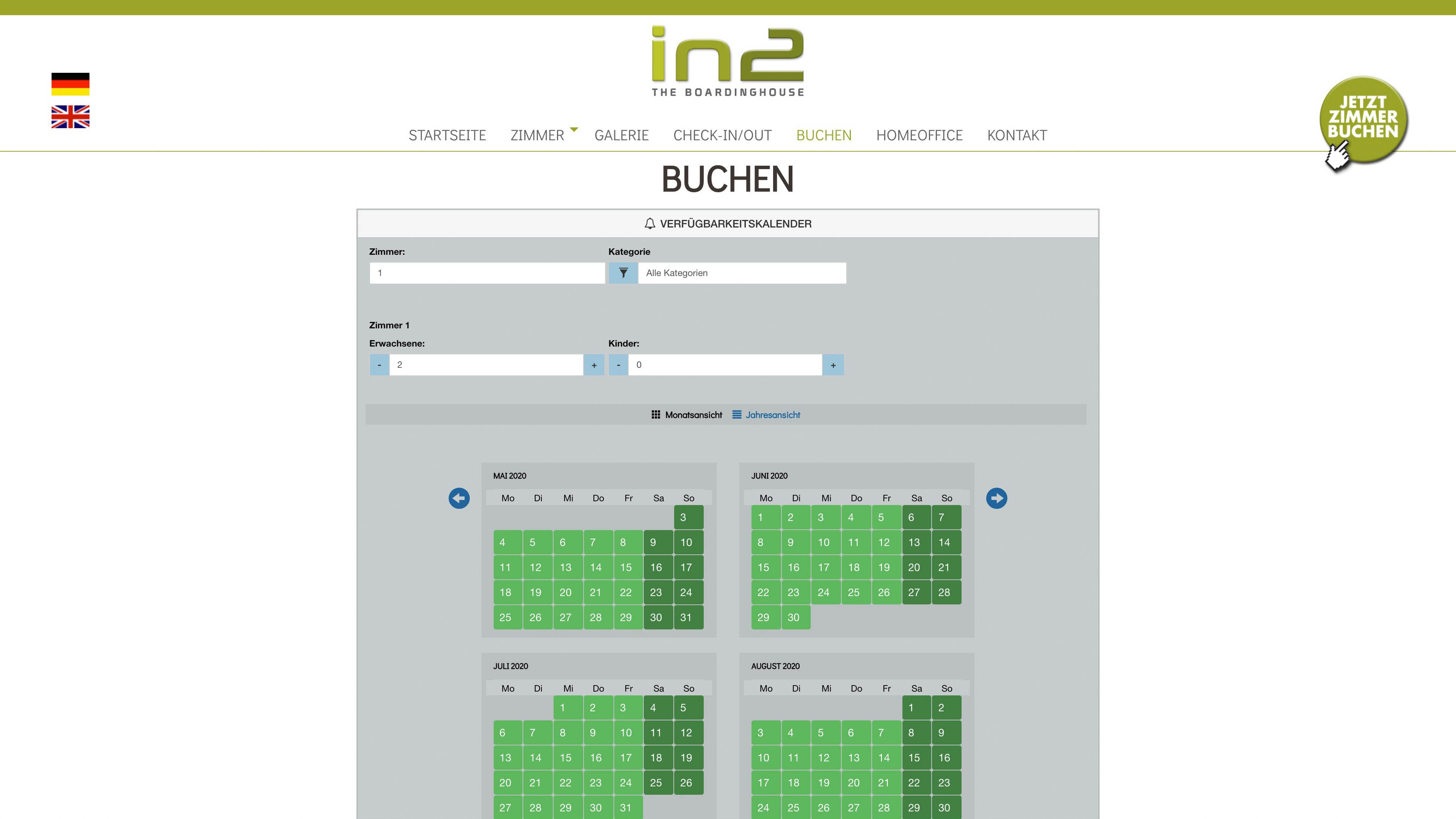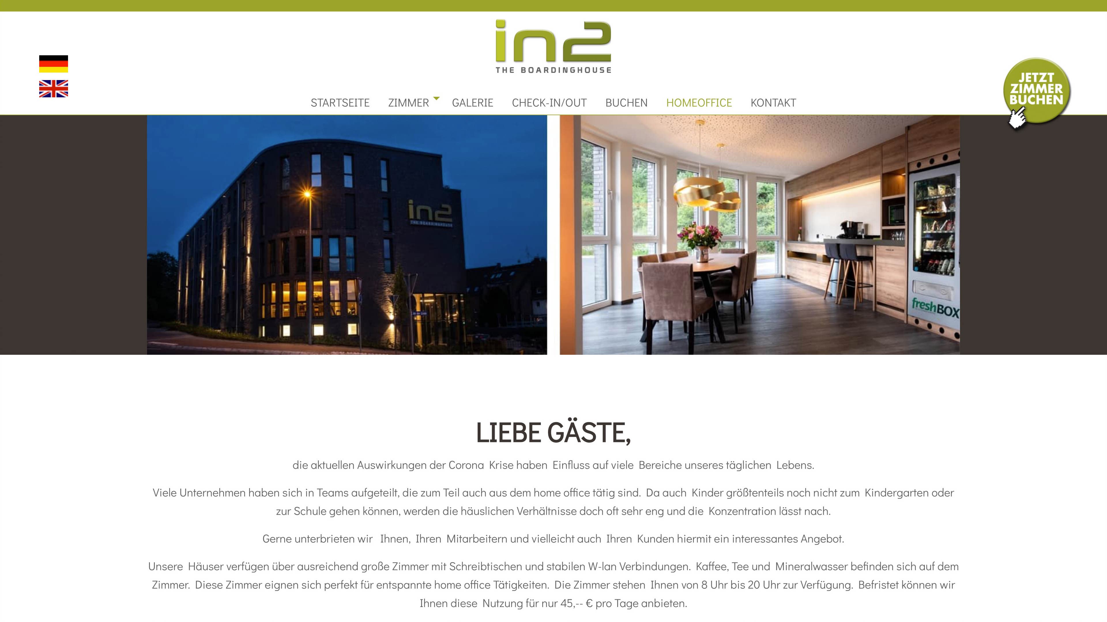 Mehrsprachiger Launch einer Typo3-Installation für das Boaringhouse in2.travel. Einbindung eines externen Buchungstools.