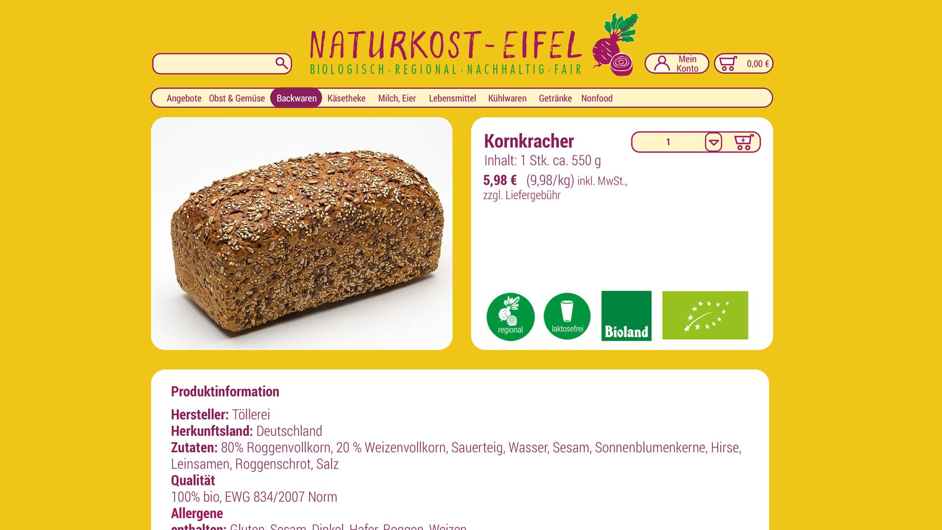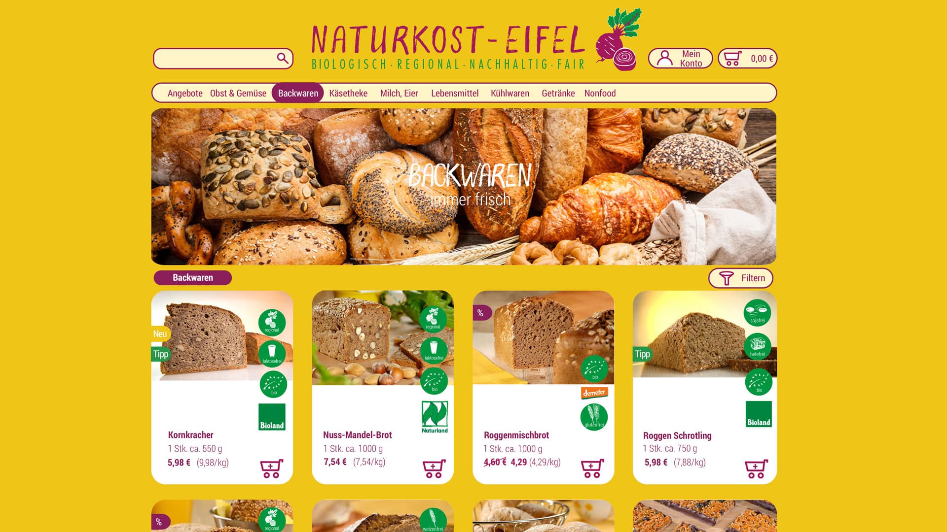 Naturkost-Eifel - Shopware Website für Naturkost Eifel in Monschau